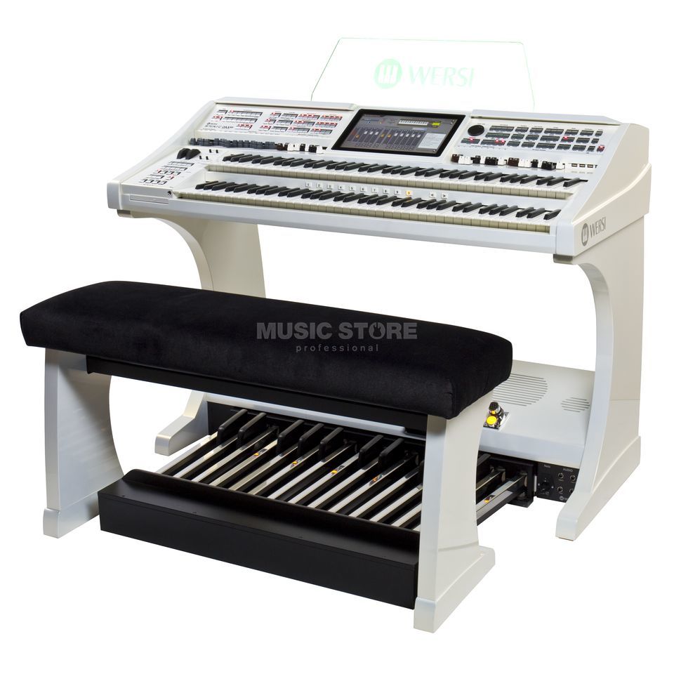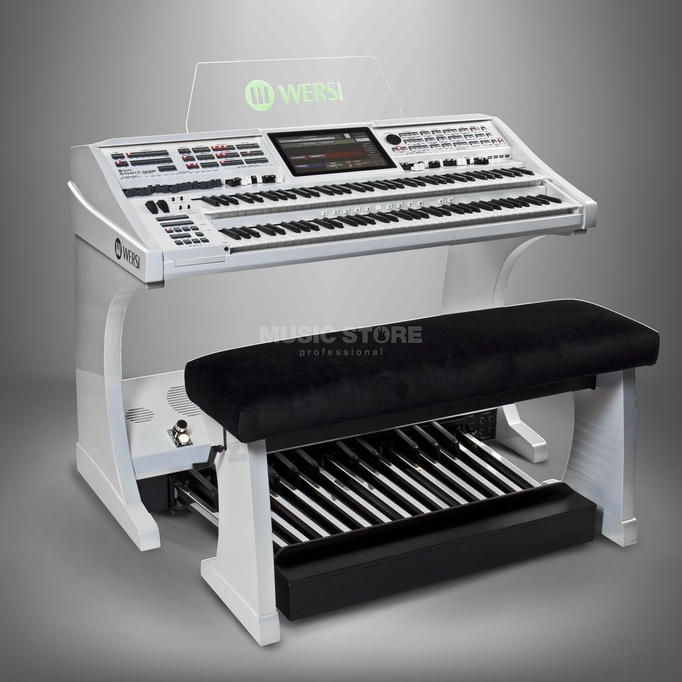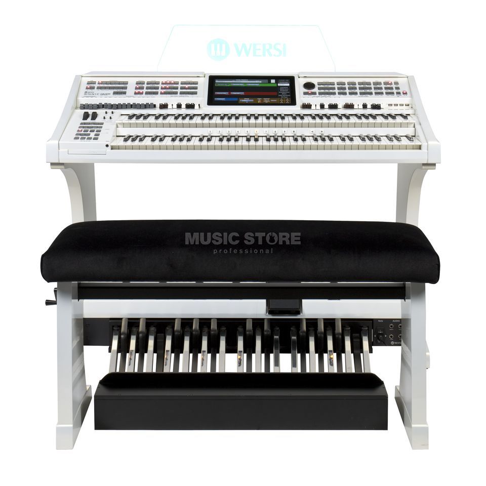 WEISS Details: Wersi Orgel SONIC OAX800 Perlmutt Weiß inkl. 25-Tastenpedal und Sitzbank